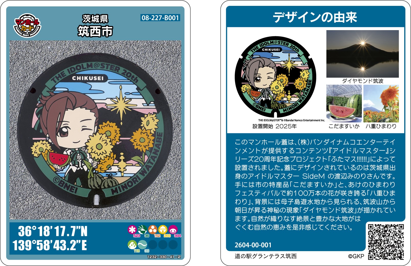 『アイドルマスター』シリーズ20周年を記念したマンホールプロジェクト「ふたマス!!!!!!」の、筑西市担当アイドル「渡辺みのり」マンホールカードの配布が決定しました!詳…