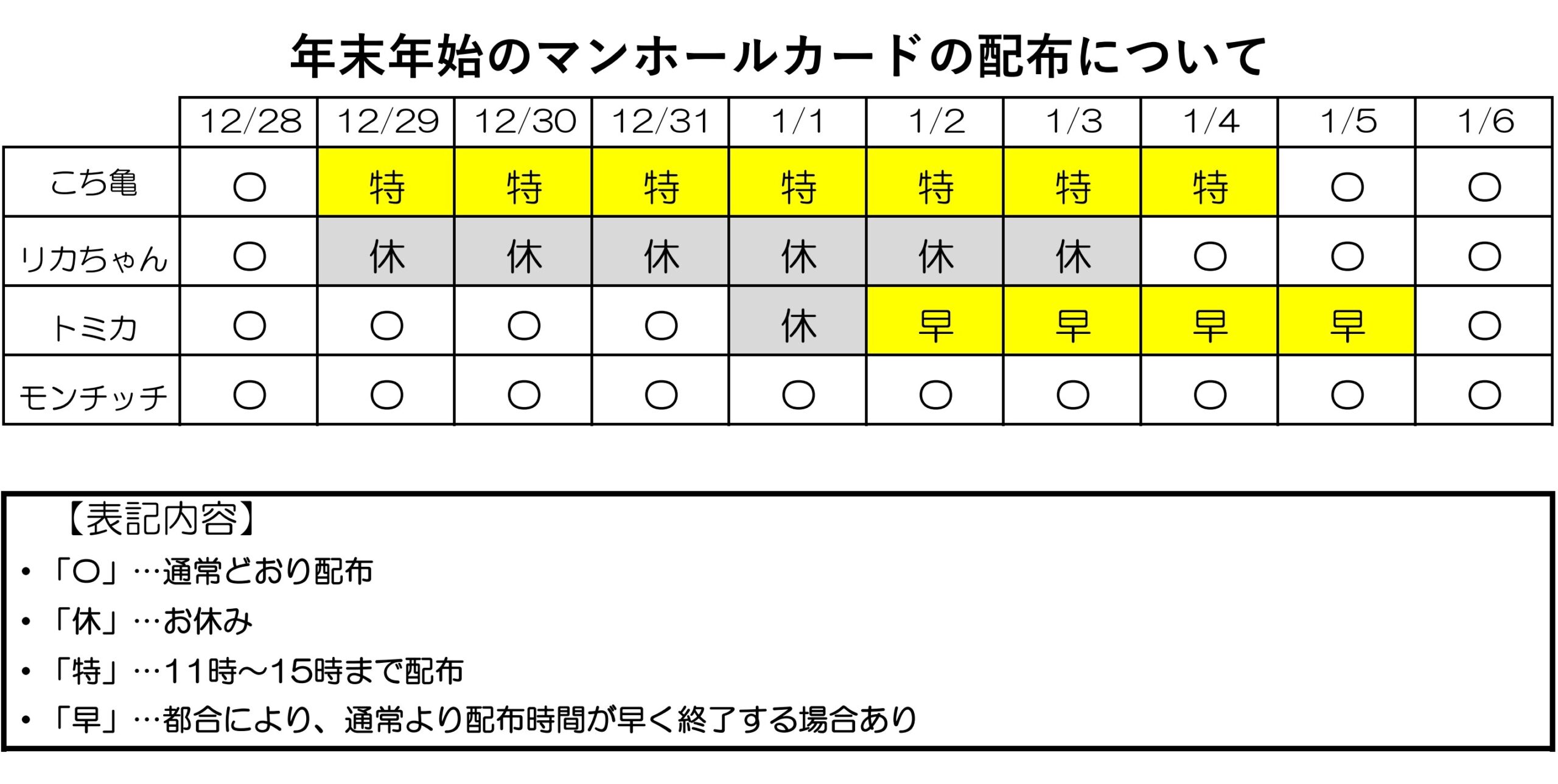 ただし、年末年始(12/29~1/3)、メンテナンス休館日(年4回)は配布しない。