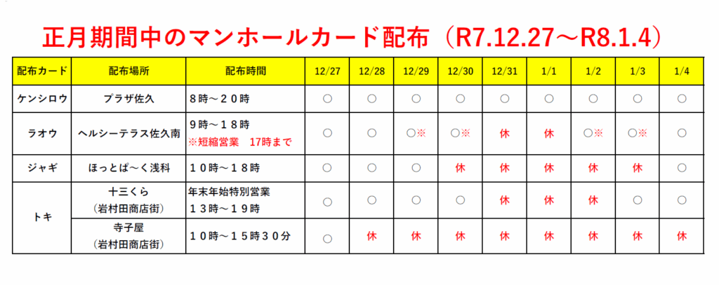 なお、佐久市(A001)のマンホールカードは無休で配布する。