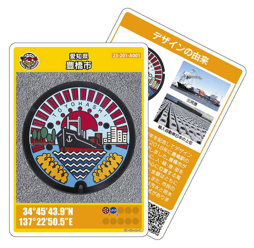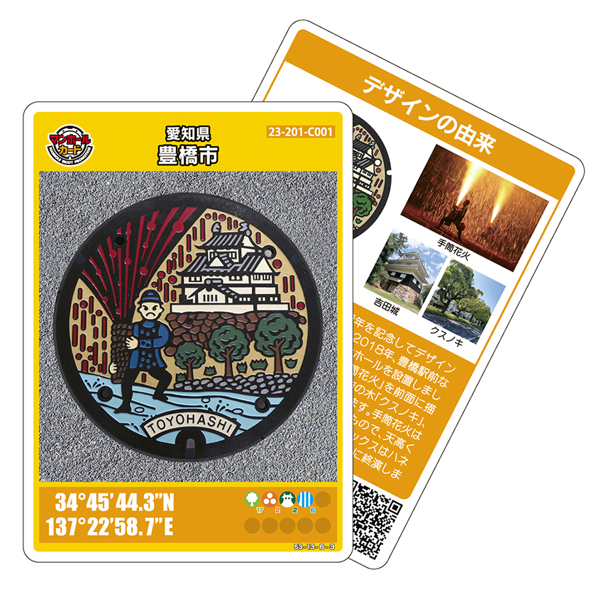 実際に豊橋駅周辺に設置しているカラーマンホールをもとにカードをリニューアルし、2025年12月17日から配布をします。